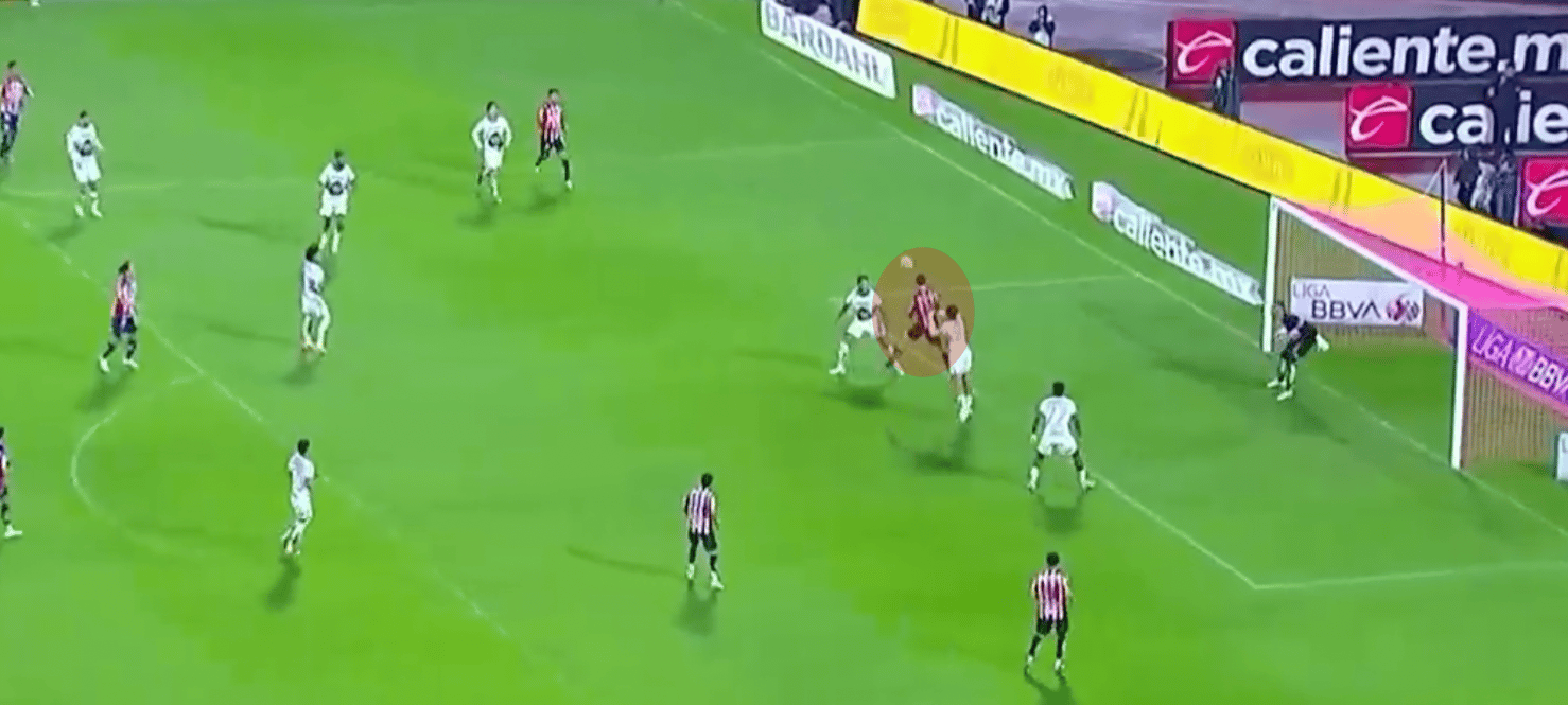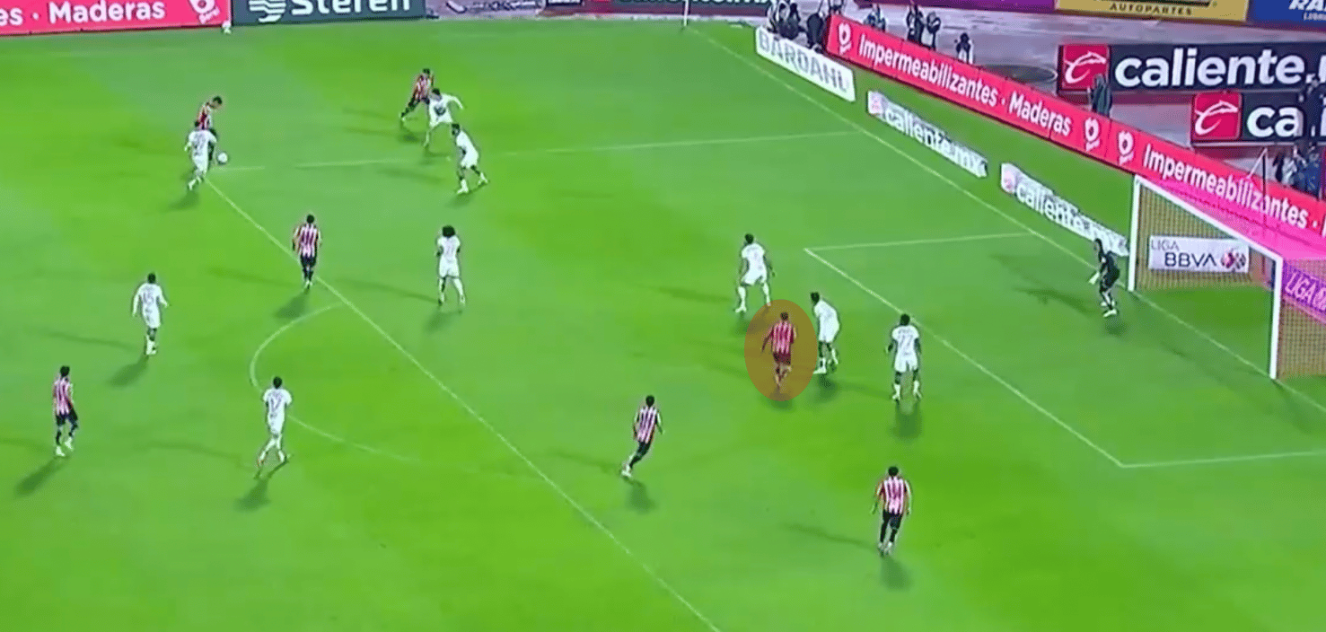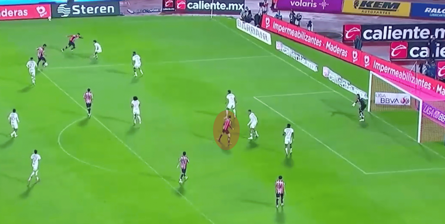 Aprovechando el lado ciego cuando Chivas puede mandar centros al área