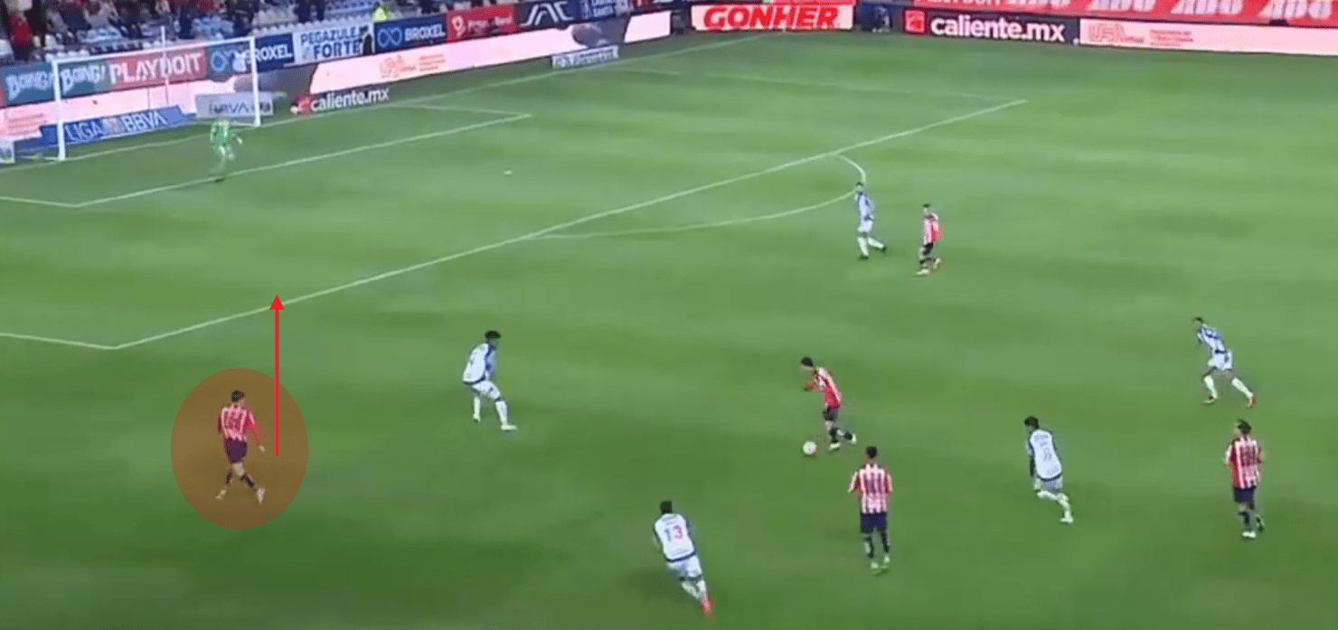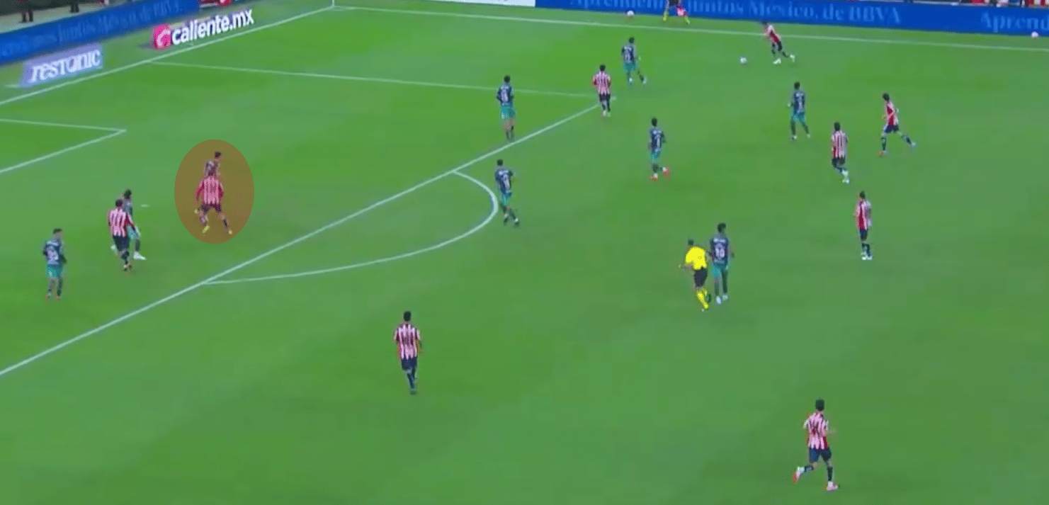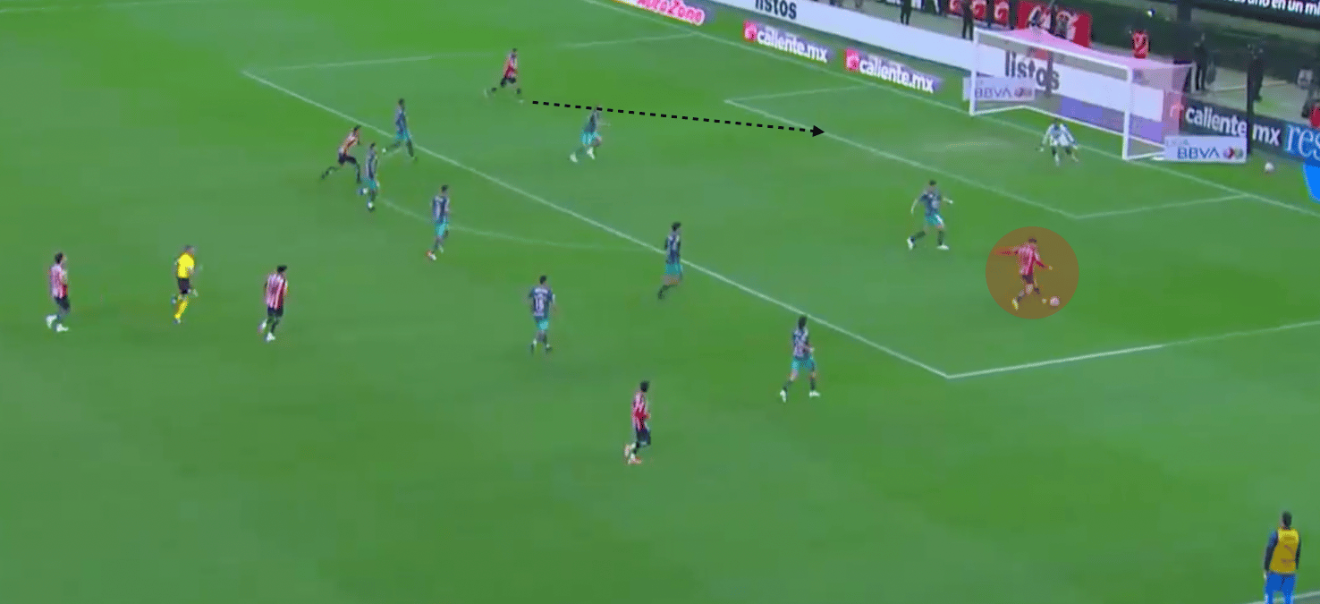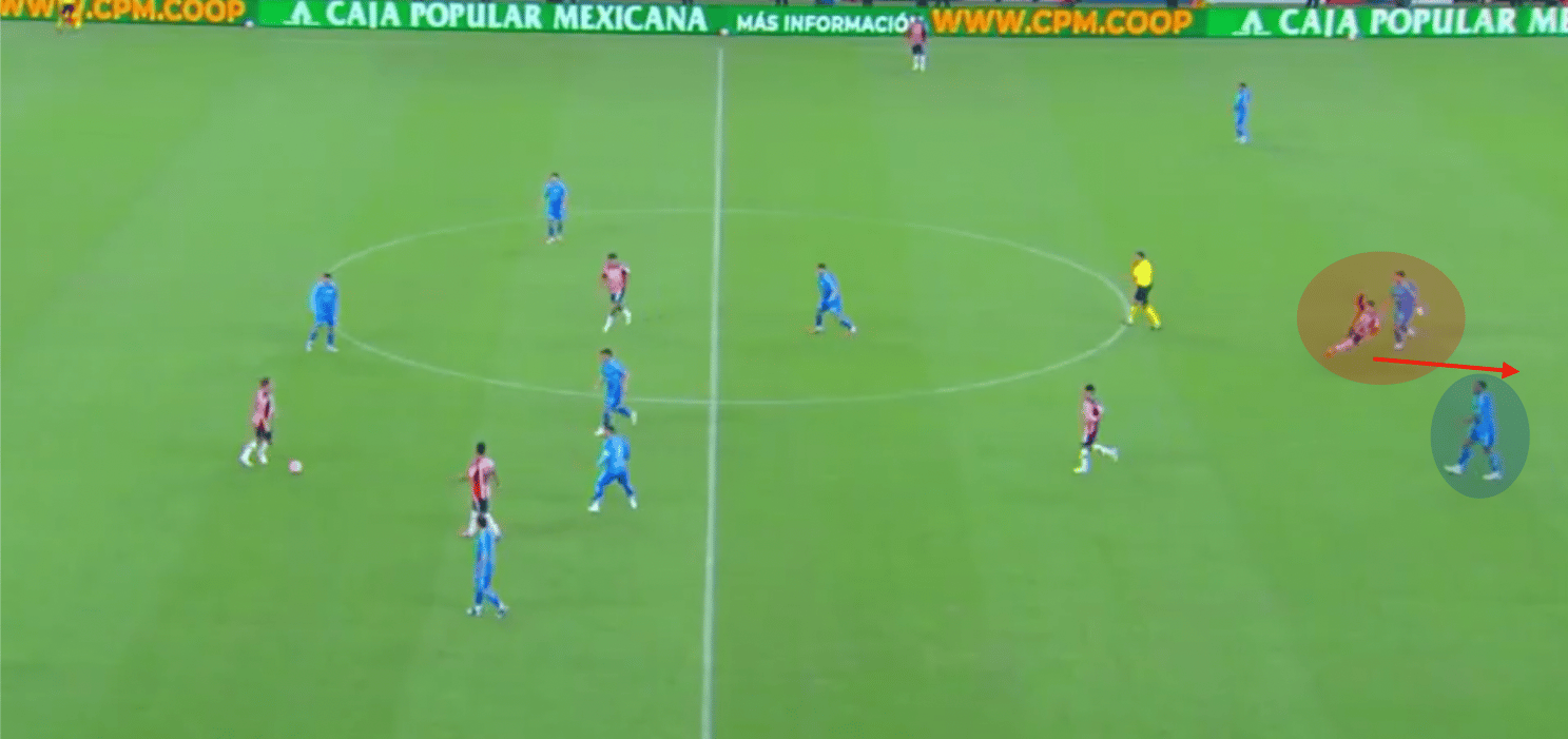 Aprovechando el lado ciego cuando Chivas puede mandar centros al área