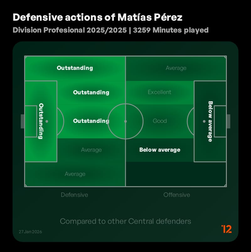Con más de 2,000 minutos jugados en cada año desde 2021, Meza también ha demostrado alta disponibilidad, un factor muy importante para un defensor.